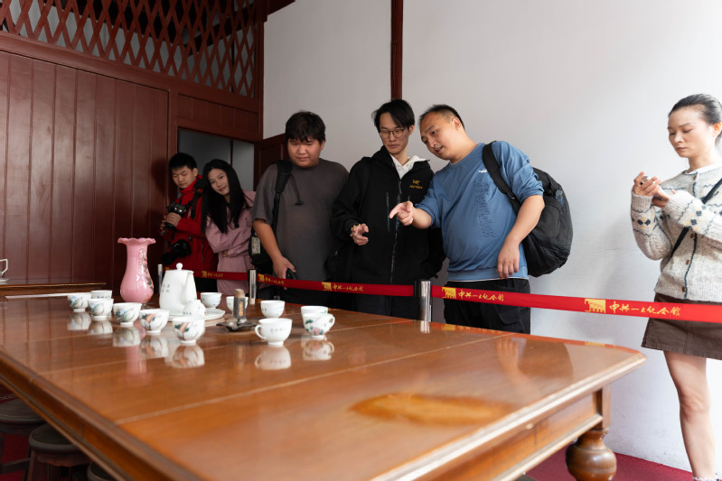 紀念館展廳內(nèi),從泛黃的《新青年》雜志、第一版《共產(chǎn)黨宣言》中文全譯本,到會議場景的逼真復原,再到運用多媒體技術再現(xiàn)的“開天辟地大事變”歷史時刻……每一件文物都是一部鮮活的歷史教科書,每一段影像都是一曲激昂的英雄贊歌。智能工程學院的師生們或駐足凝視,或低聲交流,或認真記錄,完全沉浸在那段先驅者們?yōu)閷で缶葒胬矶舷虑笏鞯膷槑V歲月里。